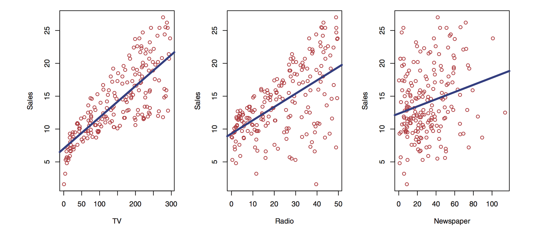 sales = a * radio + b * TV + c * newspaper + noise